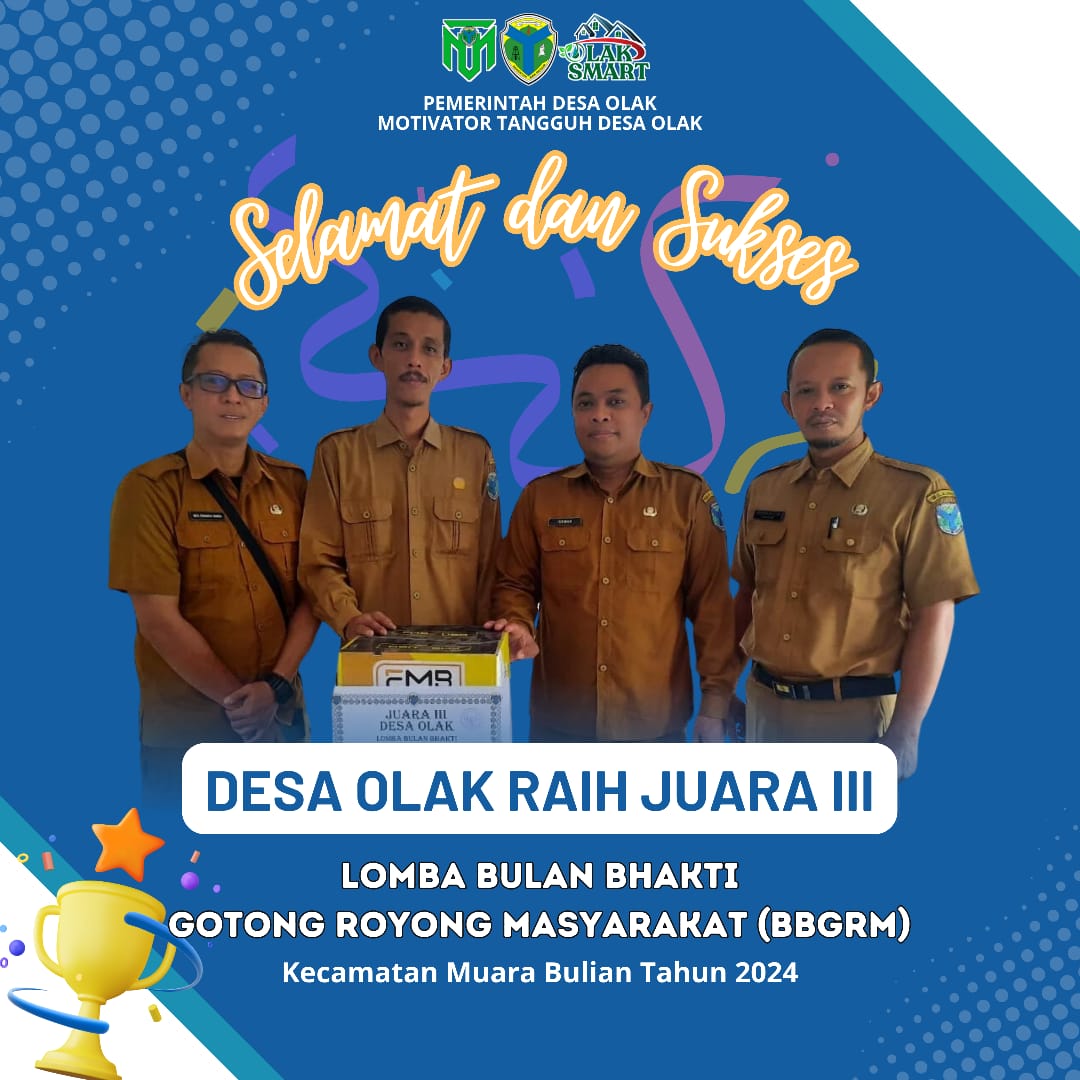 Desa Olak Raih Juara III. Semoga terus Menorehkan Prestasi kedepannya dan semakin memberikan manfaat kepada masyarakat Desa Olak.