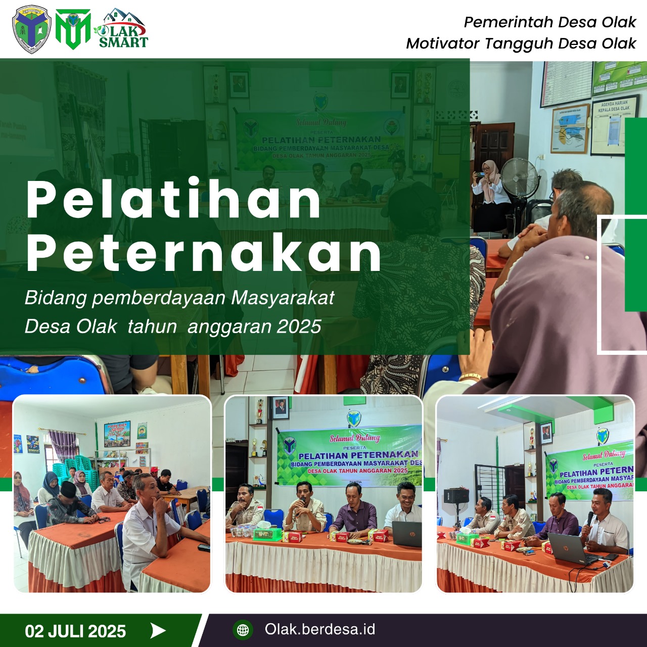 Pelatihan Peternakan Sapi Bidang Pemberdayaan Masyarakat Desa Olak, yang dilaksanakan pada tanggal 02 Juli 2025 dengan peserta sebanyak 10 orang yang memiliki sapi.