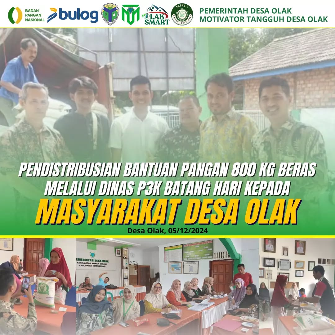 Pada Hari Rabu, 15 Mei 2024 Pukul 14:30 WIB Bertempat di Kantor Desa Olak telah disalurkan Beras CPP (Cadangan Pangan Pemerintah ) kepada KPM penerima sebanyak 80 orang. Sesua dengan daftar Penerim.......