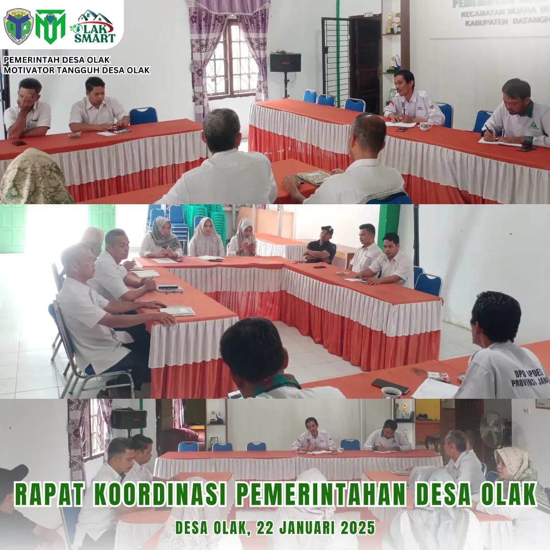Rakor pertama di bulan Januari pada tanggal 22 Januari Tahun 2025 yang dilaksanakan setiap bulan, untuk meningkatkan Kinerja Pemerintah Desa Olak.