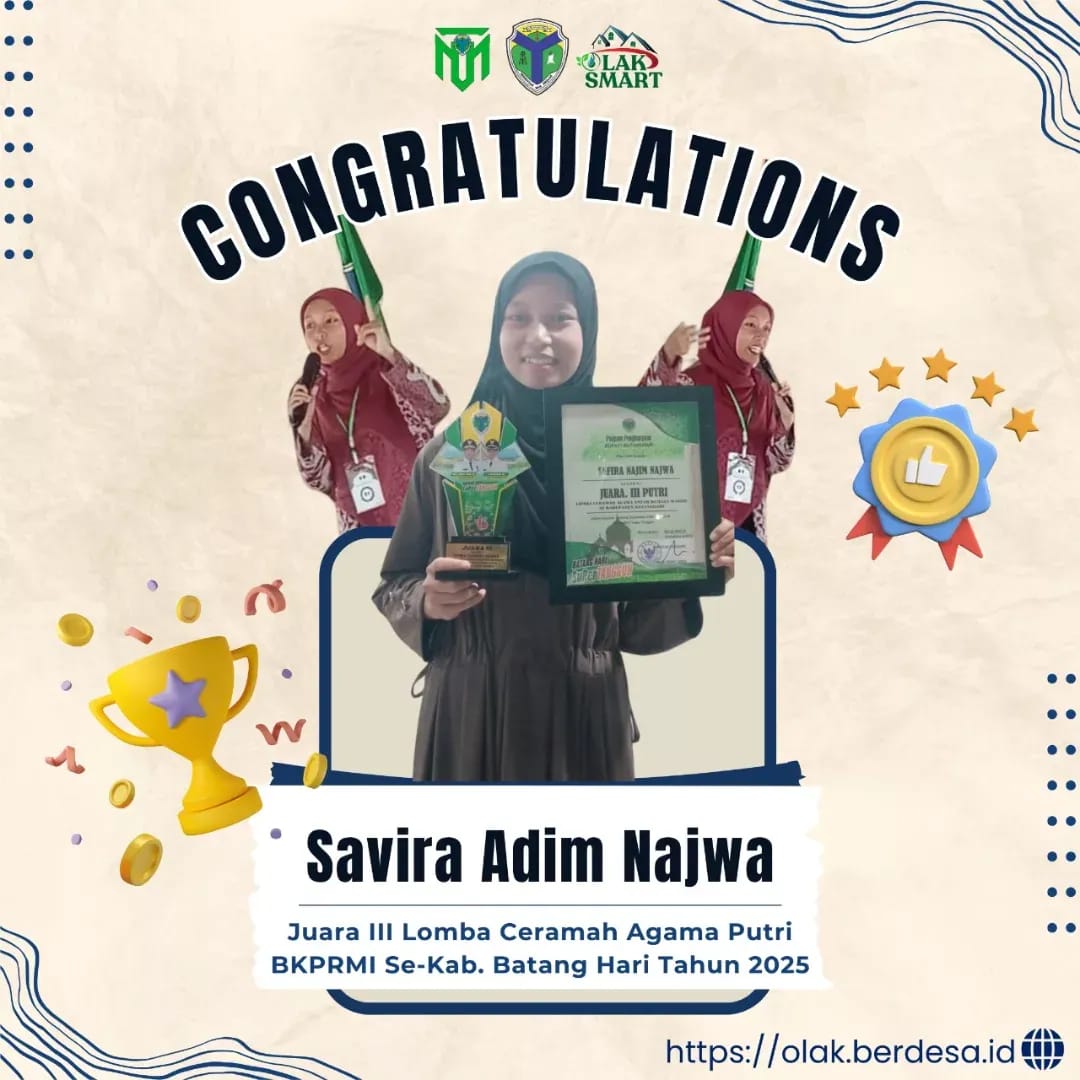 JUARA III LOMBA CERAMAH AGAMA PUTRI BKPRMI Se-Kabupaten Batang Hari 2025